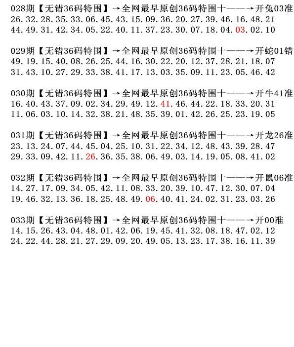 | 031期:六尾中特【4-5-6-7-8-9】开:6尾26准 |