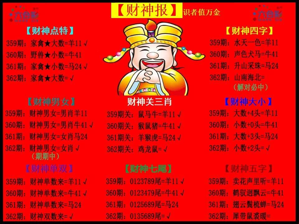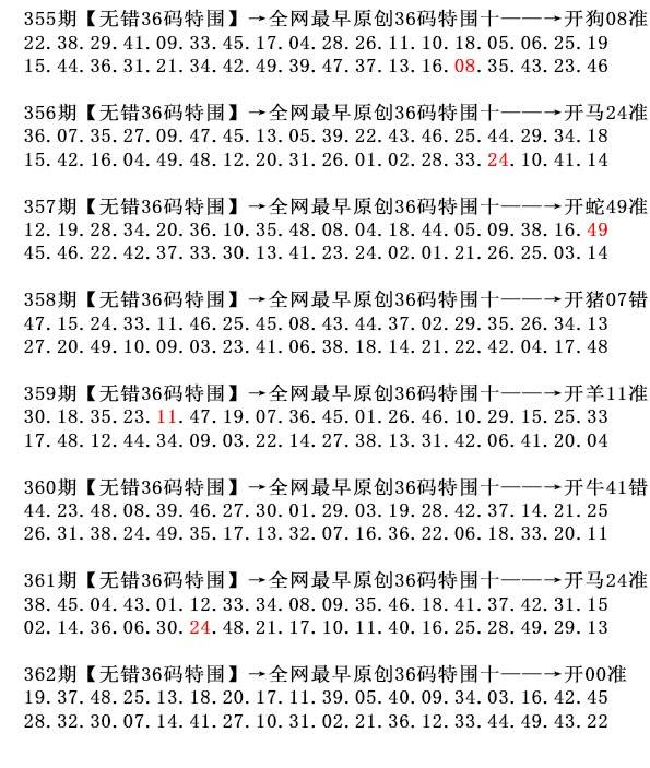 | 360期:六尾中特【1-3-4-5-7-9】开:1尾41准 |
